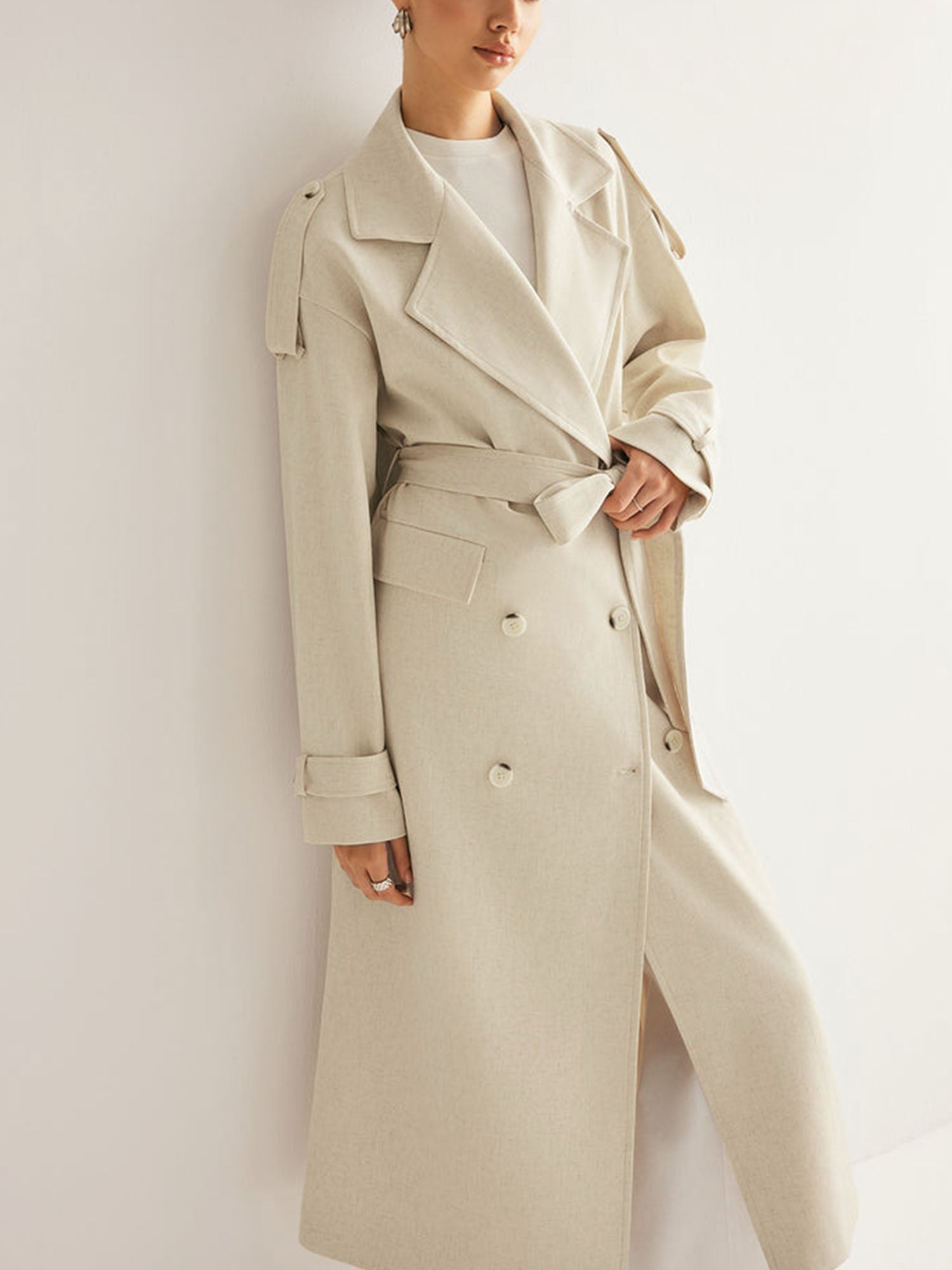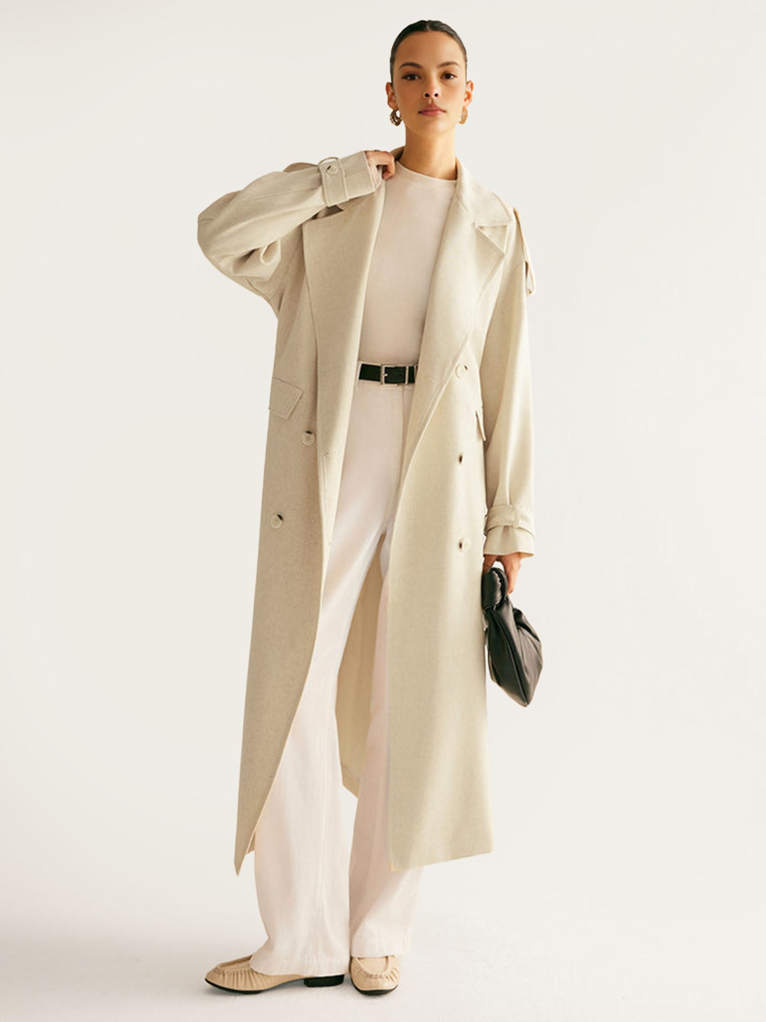 "Oatmeal Trench" Double-Breasted Maxi Coat