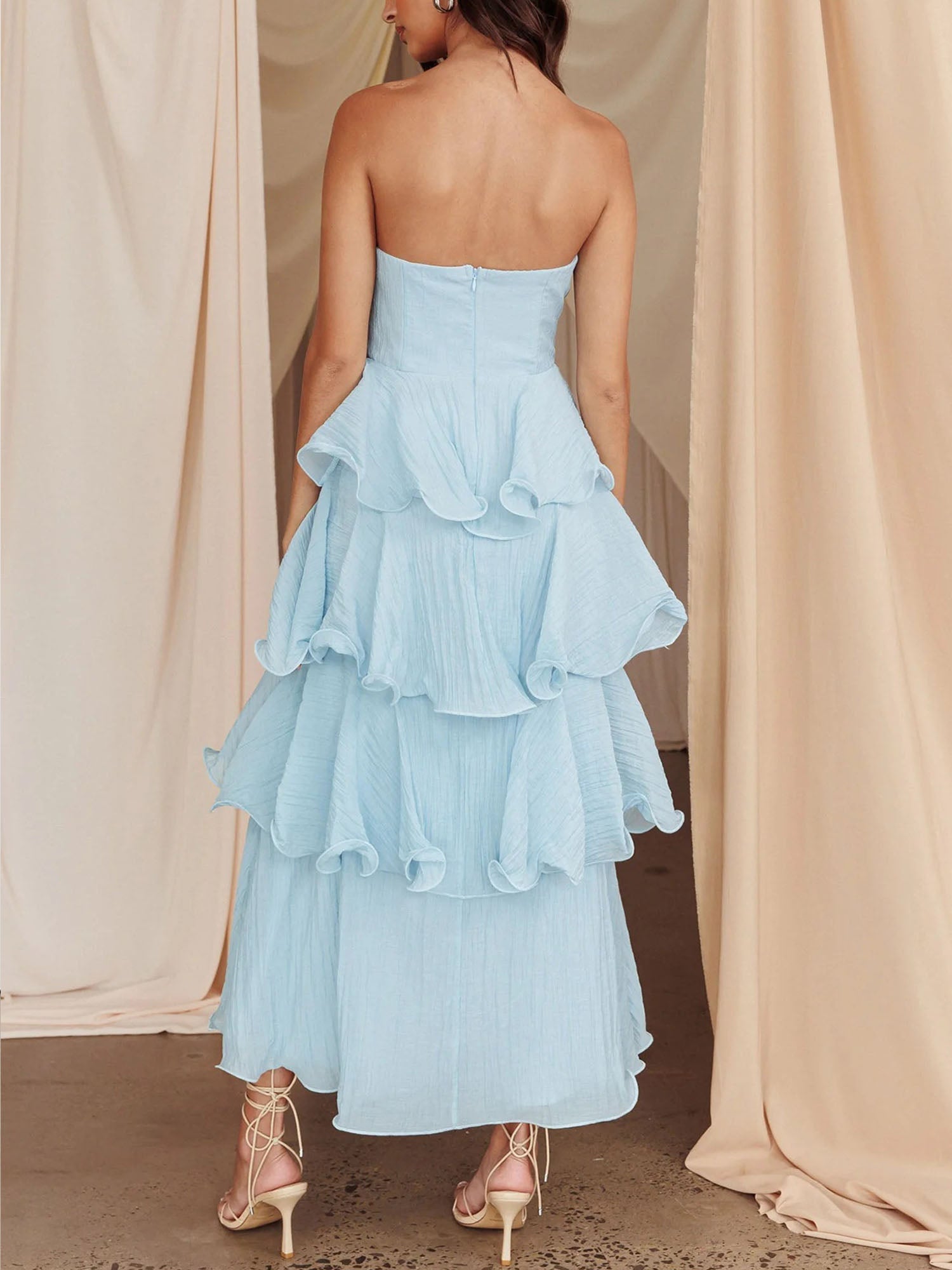 "Sky Ruffle" Strapless Tiered Maxi Dress