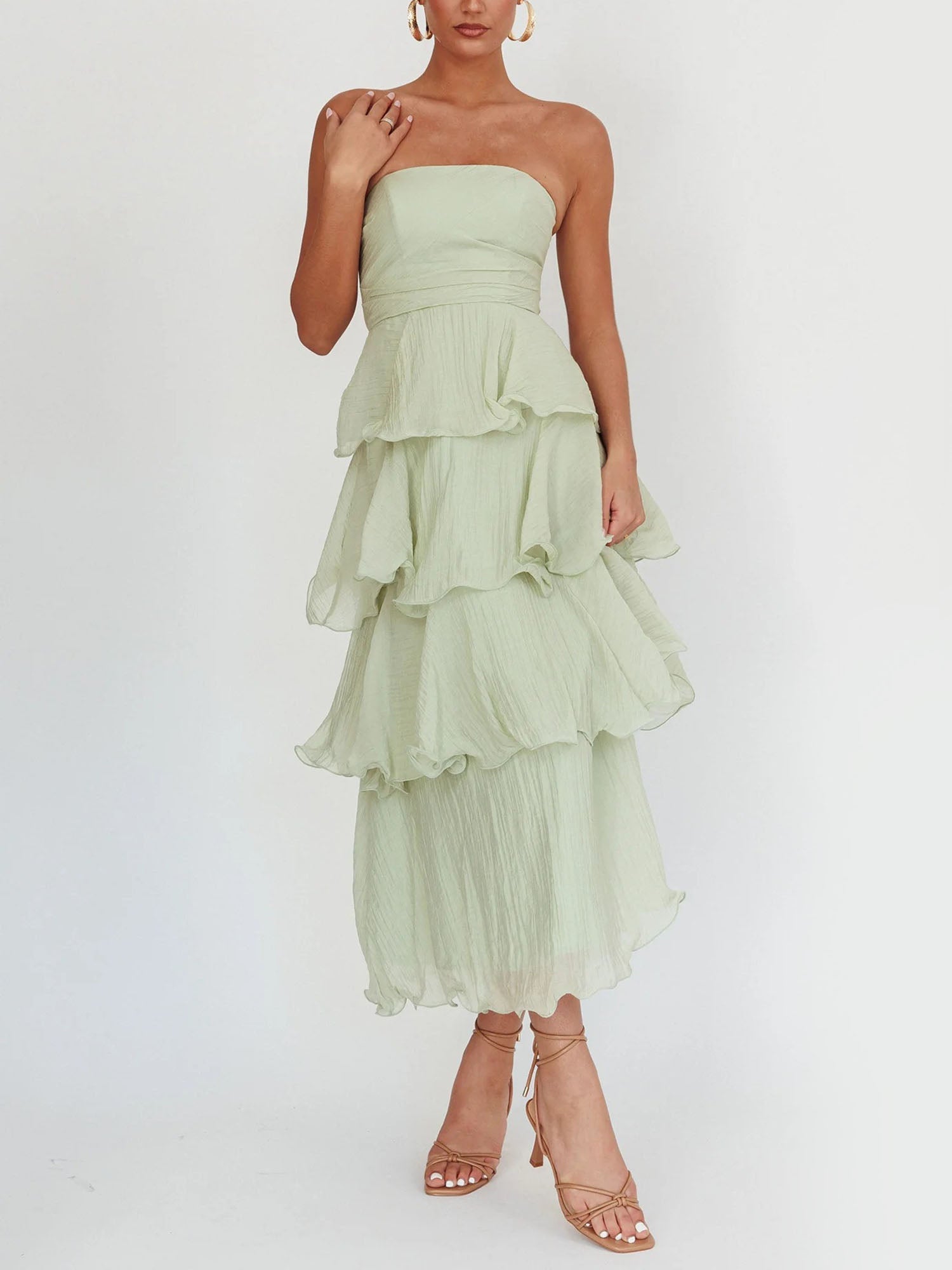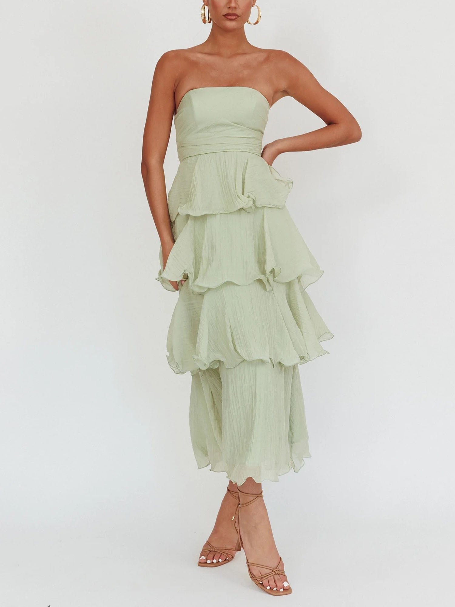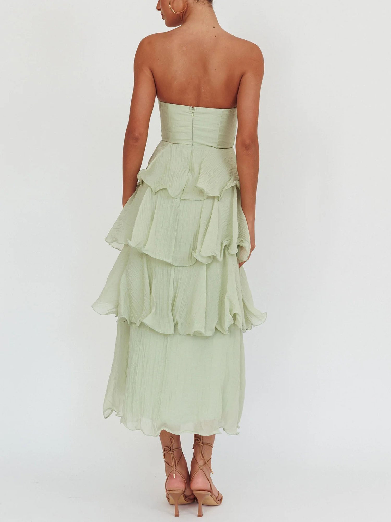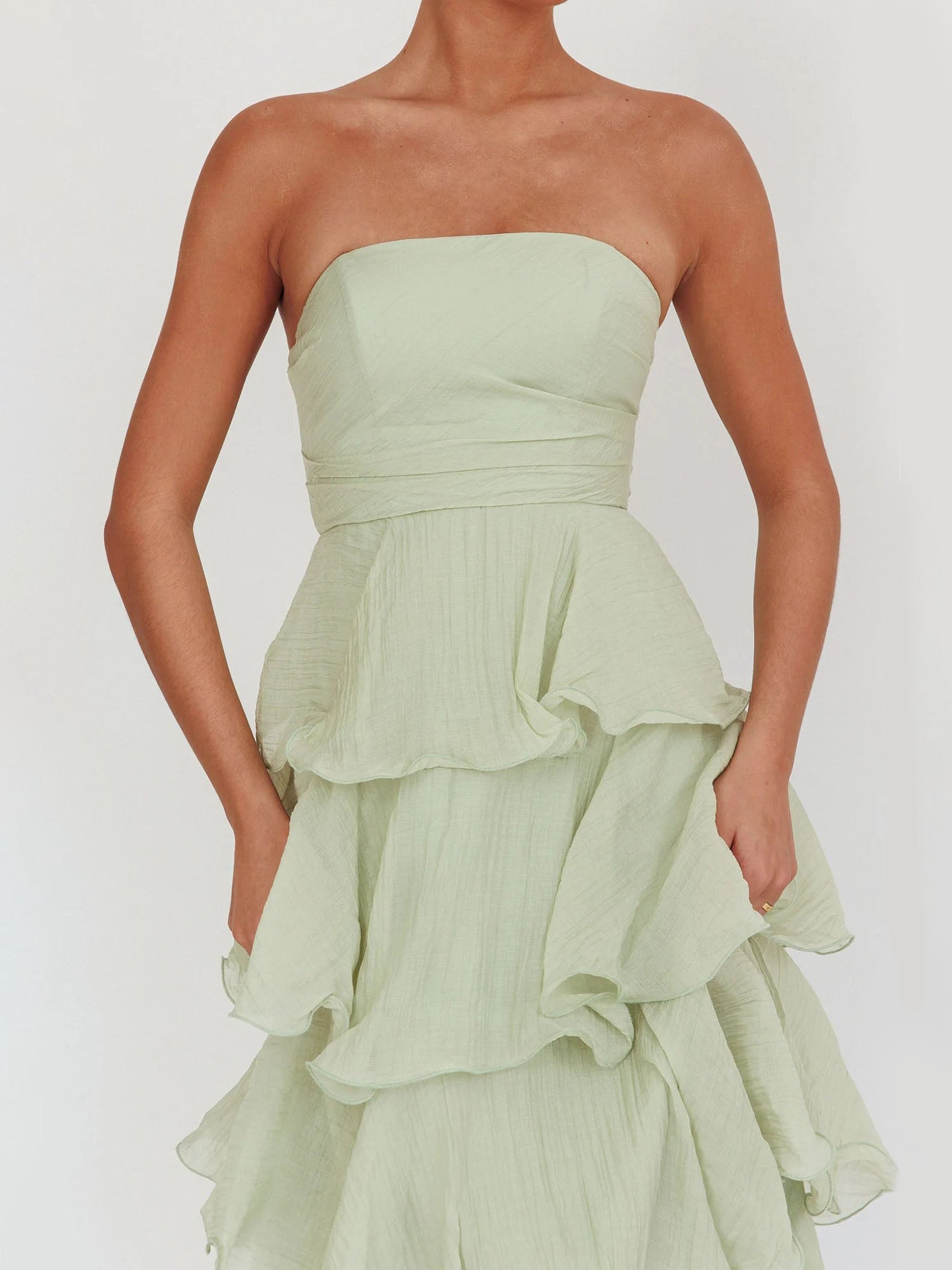 "Sage Ruffle" Strapless Tiered Maxi Dress
