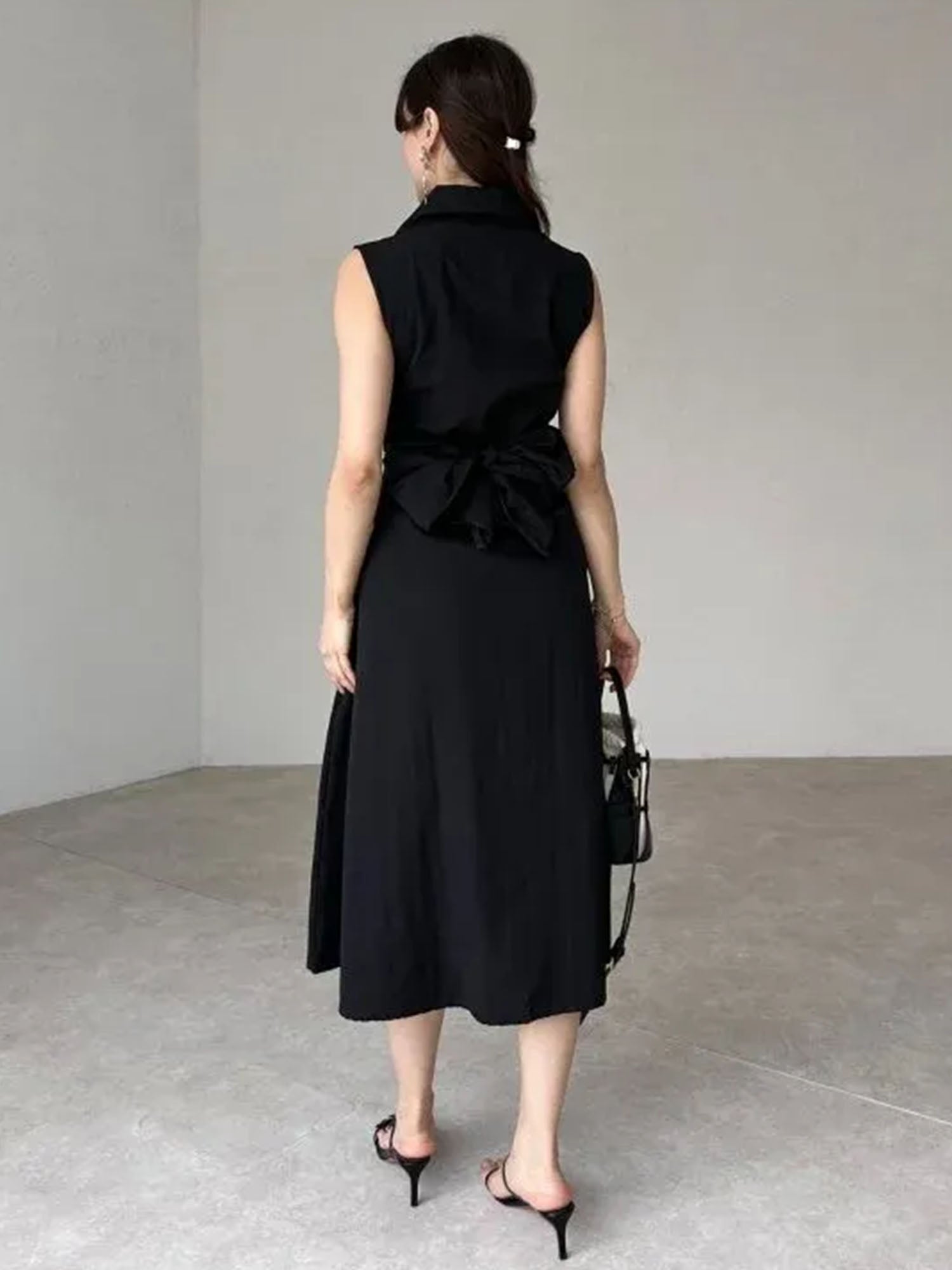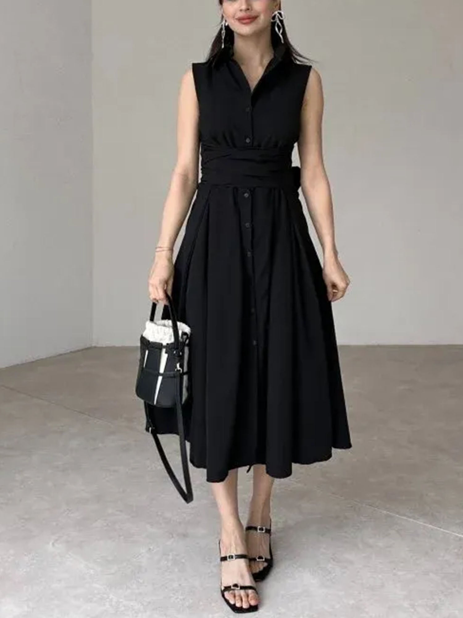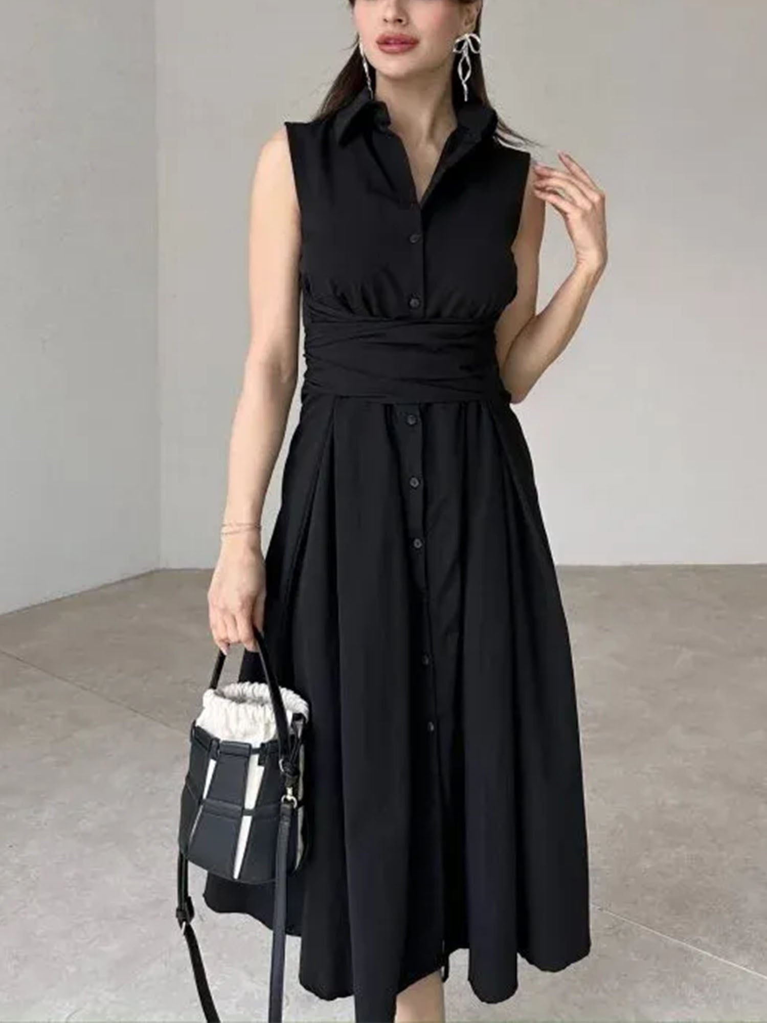 "Tie Waist Poplin" Sleeveless Midi Dress