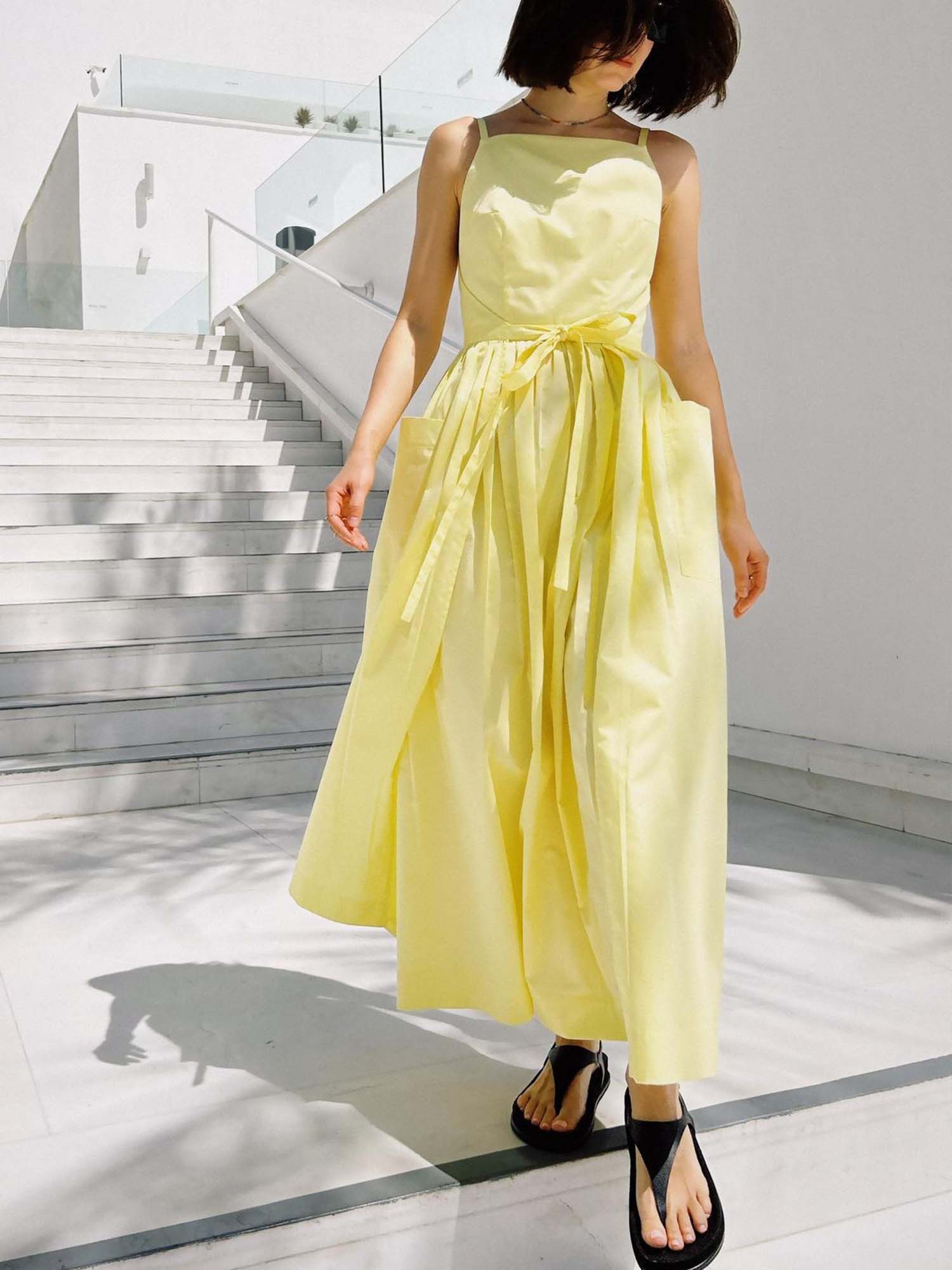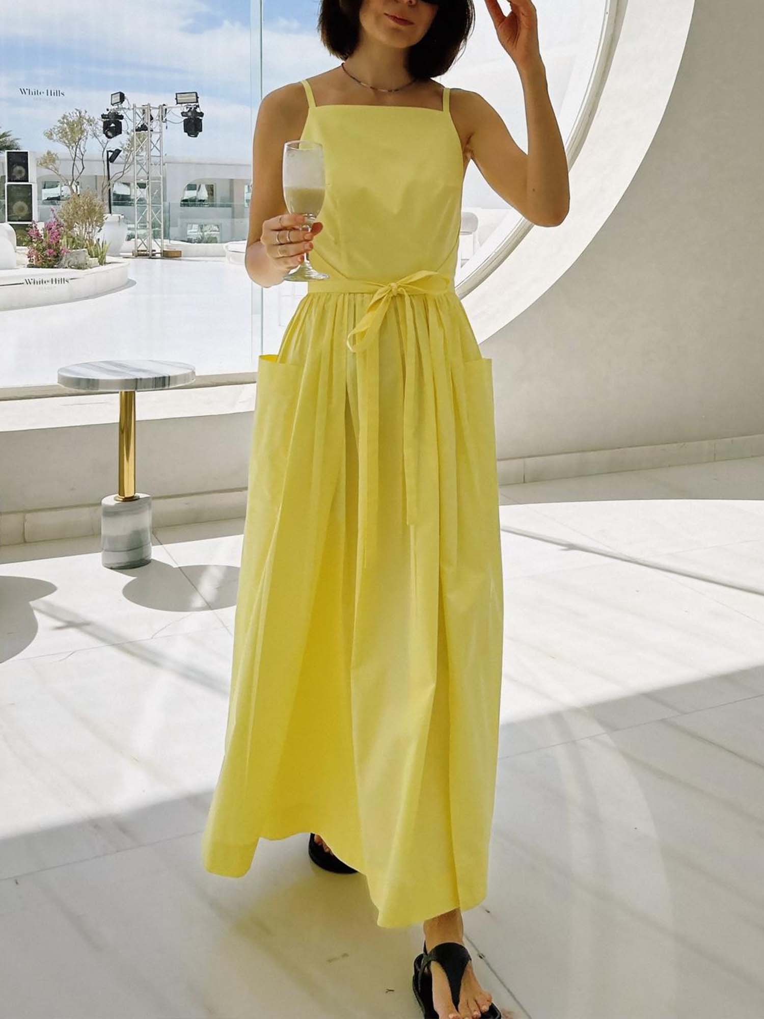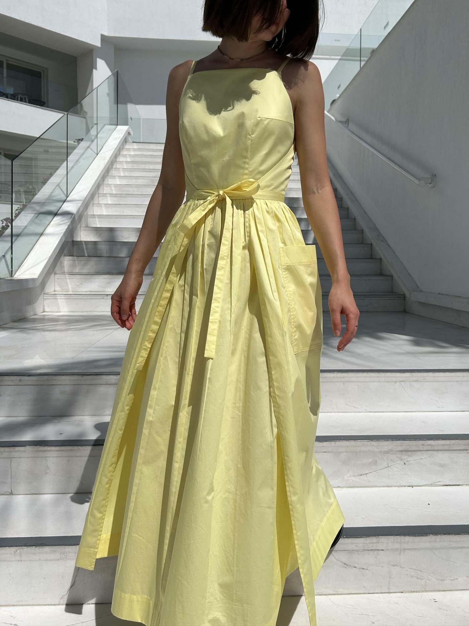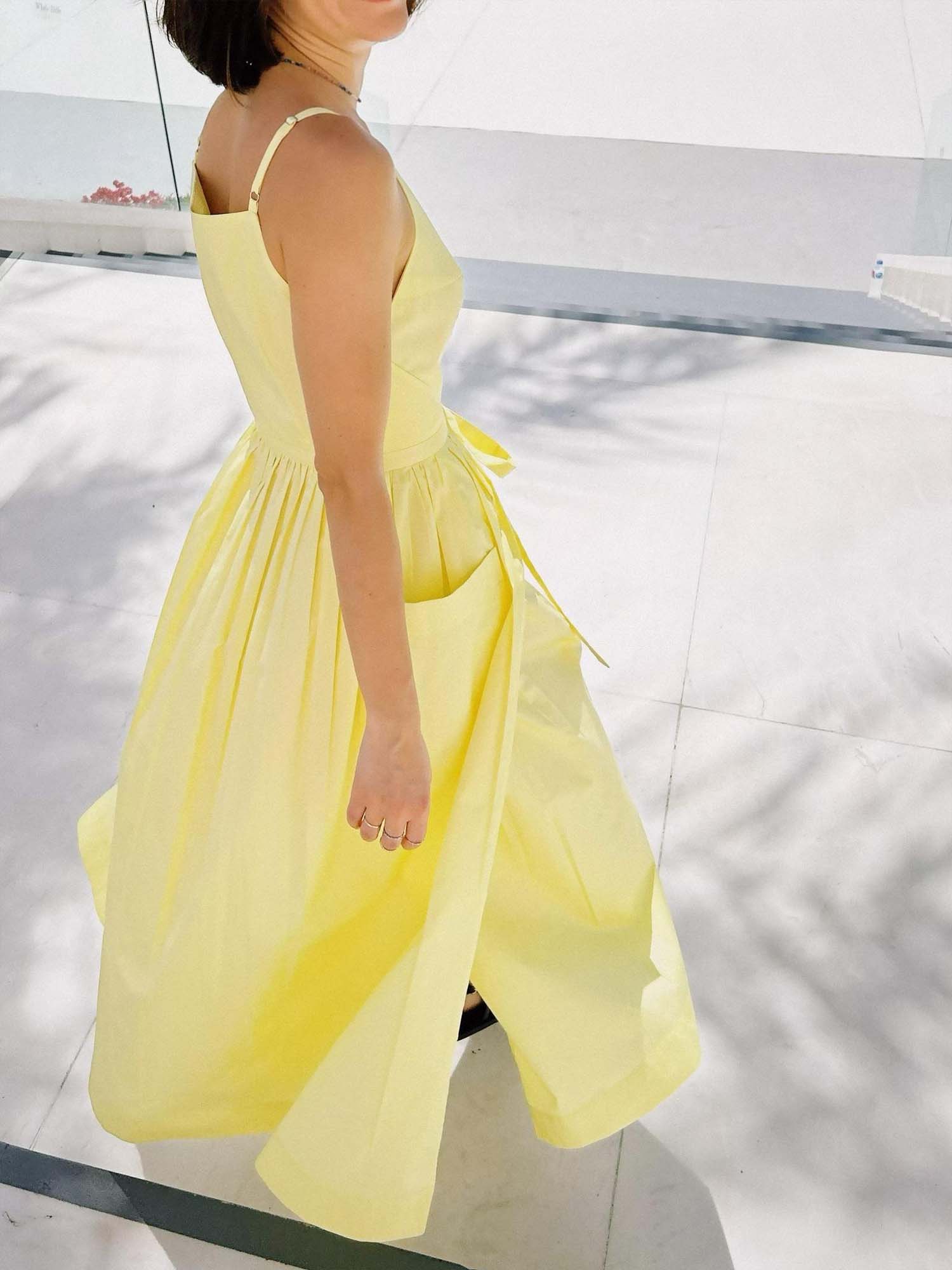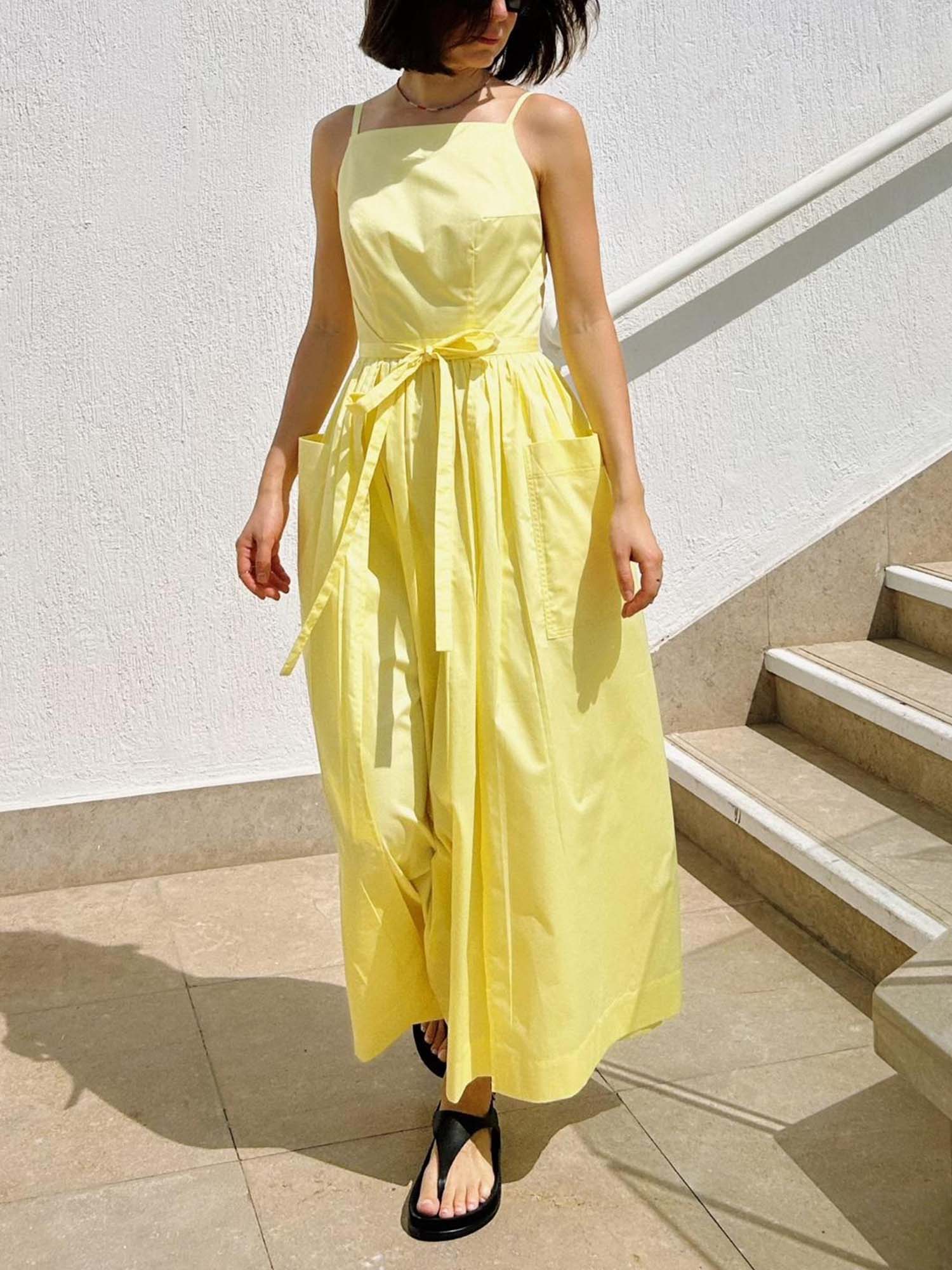 The bright lemon-yellow hue instantly lifts any look, while the square neckline and sleeveless bodice create a clean, modern silhouette....